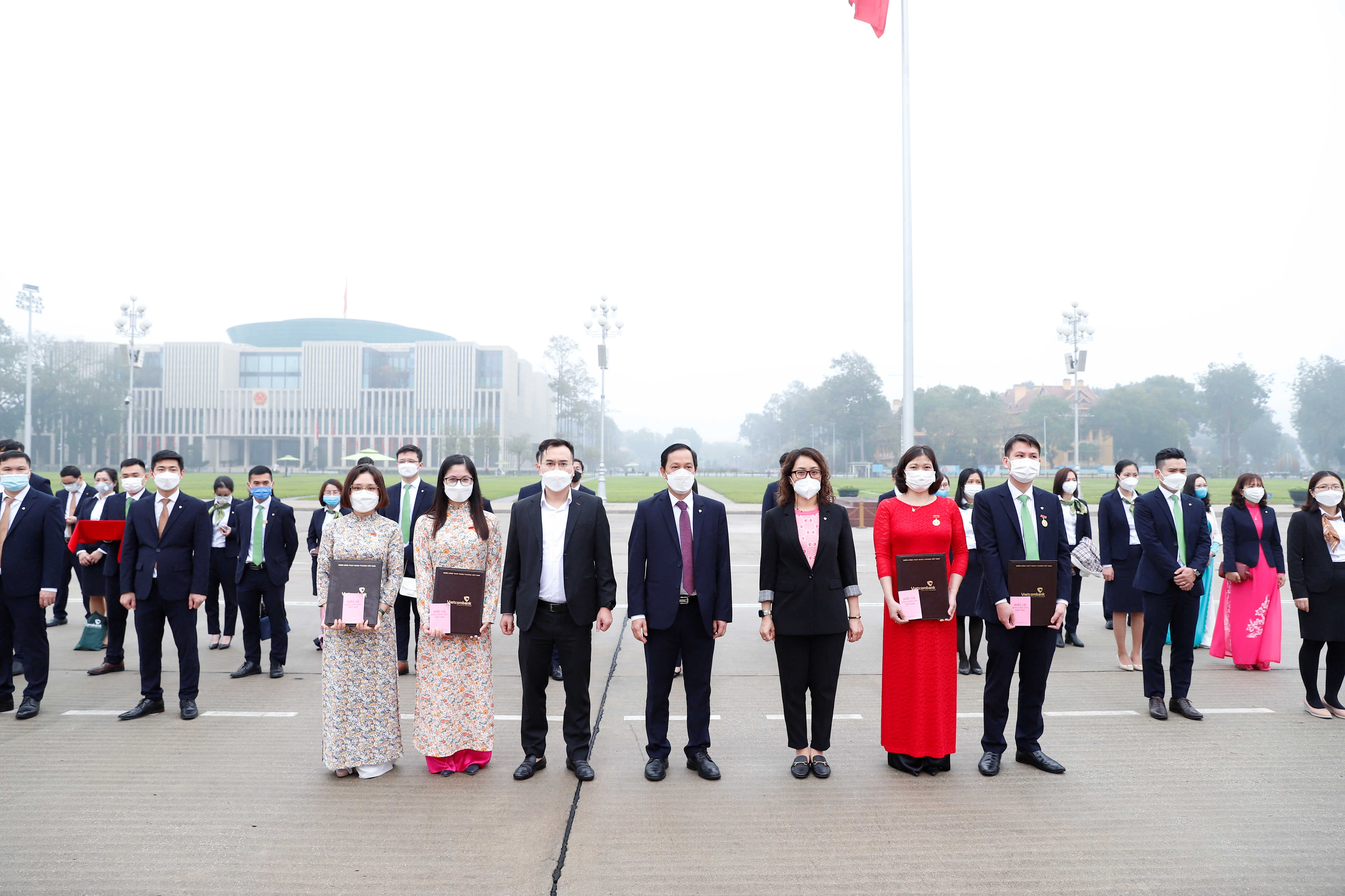 Đảng bộ, Ban Giám đốc Vietcombank Chương Dương chụp ảnh lưu niệm cũng các đảng viên mới tại quảng trường Ba Đình lịch sử