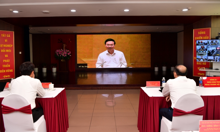Thực hiện chỉ đạo của Đảng ủy Khối DNTW, Đảng ủy Vietcombank đã tổ chức Hội nghị trực tuyến kết nối với Hội nghị toàn quốc nghiên cứu, học tập, quán triệt, tuyên truyền Nghị quyết Hội nghị lần thứ 5 BCH Trung ương Đảng khóa XIII (Điểm cầu trung tâm).