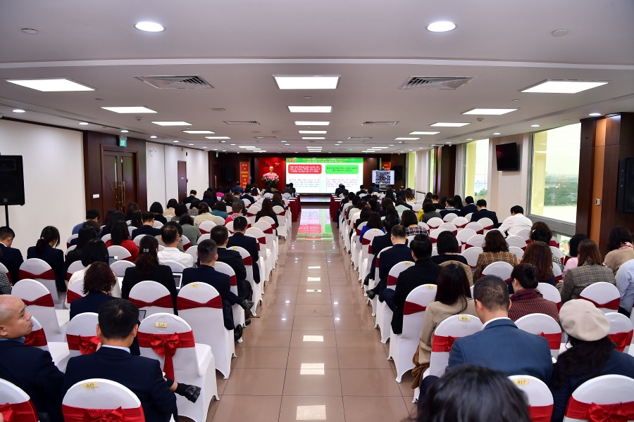Hình ảnh Hội nghị toàn quốc nghiên cứu, học tập, quán triệt, tuyên truyền Nghị quyết Hội nghị lần thứ 6 BCH Trung ương Đảng khóa XIII tại Hội trường Diên Hồng – tòa nhà Quốc hội, nhìn từ điểm cầu tại Hội trường tầng 19 – TSC Vietcombank, 198 Trần Quang Khải, Hoàn Kiếm, Hà Nội