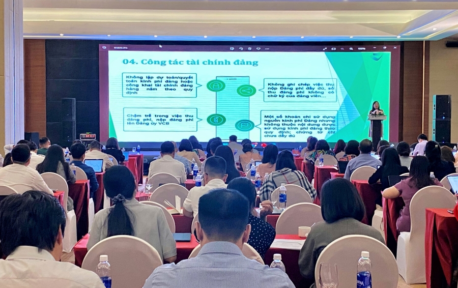 Tại Hội nghị, các đại biểu đã được các báo cáo viên của Đảng ủy Khối DNTW, Ban Tổ chức Trung ương và Đảng ủy Vietcombank truyền đạt, cung cấp những nội dung quan trọng và thiết yếu nhất của 4 chuyên đề nghiệp vụ công tác Đảng, gồm: công tác tổ chức, xây dựng Đảng; Công tác văn phòng cấp ủy; Công tác Kiểm tra giám sát; Công tác tuyên giáo và dân vận.