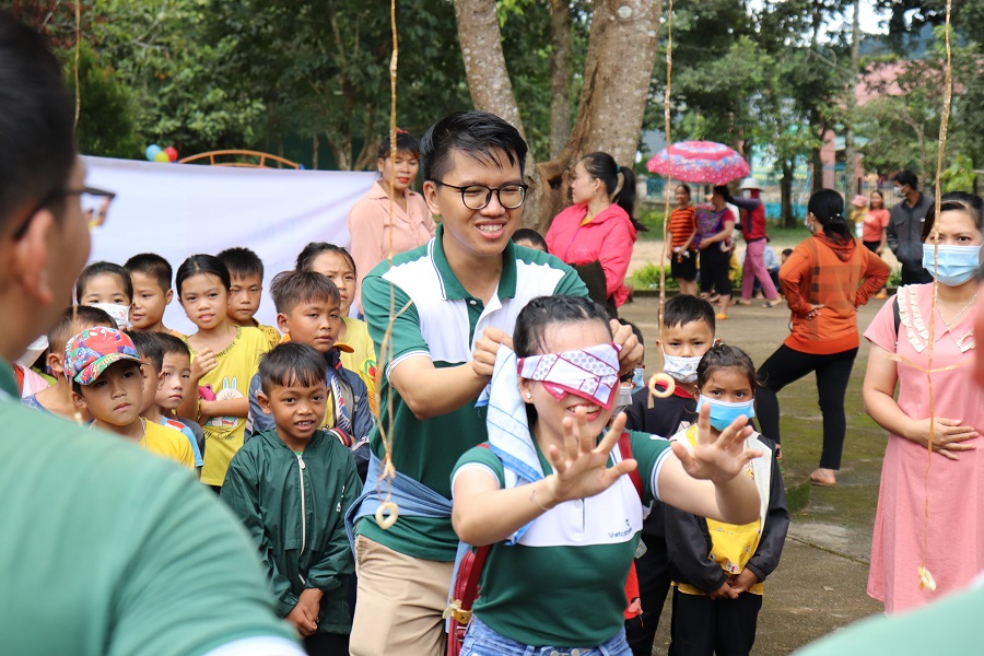Đoàn hướng dẫn các em học sinh chơi trò chơi tại ngày hội thiếu nhi