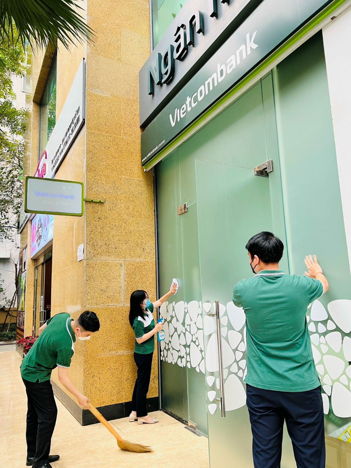 Với mục tiêu làm sạch khuôn viên làm việc và khu vực để máy ATM, góp phần đẩy lùi dịch COVID - 19, đoàn viên các chi đoàn trực thuộc Đoàn cơ sở Vietcombank Sở giao dịch đã tham gia lau dọn vệ sinh, làm sạch, xịt khuẩn máy ATM và các khu vực xung quanh như hành lang, cửa, thang máy… nhằm tạo cảnh quan Xanh - Sạch - Đẹp tại các điểm giao dịch của Vietcombank.