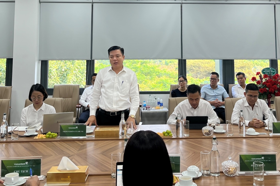 TS. Hồ Văn Tuấn - Giám đốc Vietcombank Sở Giao dịch, Chủ nhiệm đề tài trình bày kết quả nghiên cứu