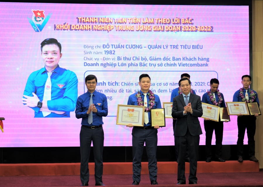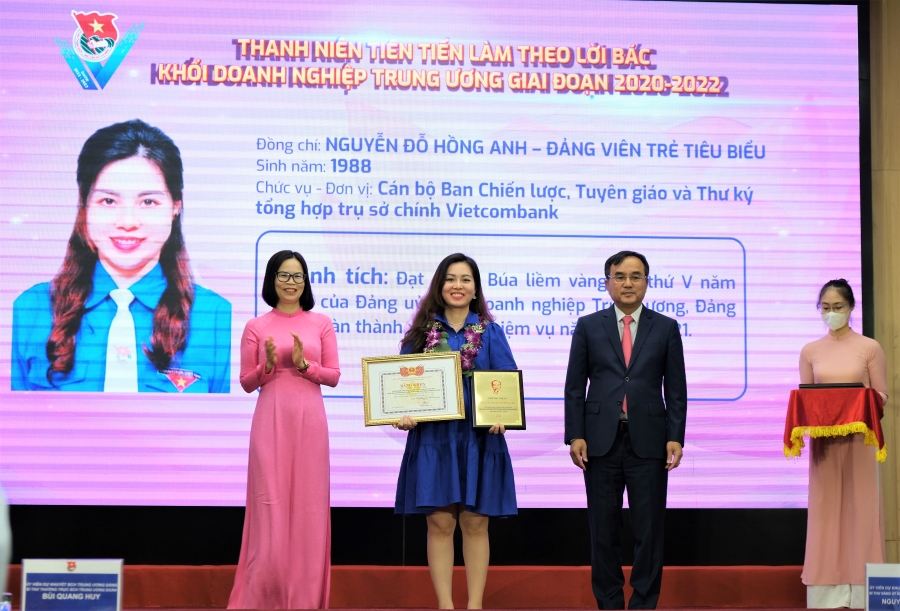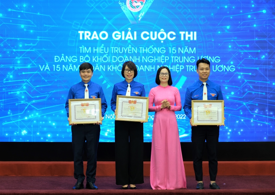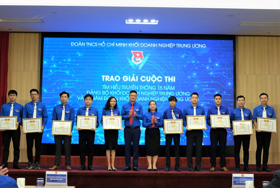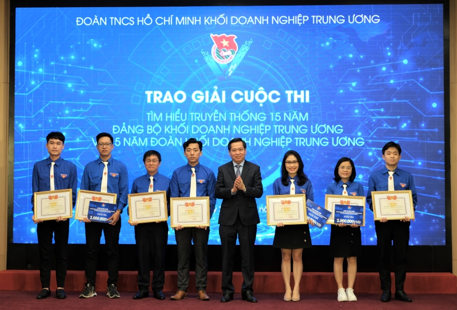 Cũng tại chương trình, Đoàn Khối Doanh nghiệp Trung ương đã tổ chức trao giải Cuộc thi trực tuyến tìm hiểu truyền thống 15 năm Đảng bộ Khối Doanh nghiệp Trung ương và 15 năm Đoàn Khối Doanh nghiệp Trung ương. Đoàn Ngân hàng TMCP Ngoại thương Việt Nam vinh dự là một trong ba đơn vị có thành tích xuất sắc trong triển khai cuộc thi và có 02 thí sinh được khen thưởng, trong đó đ/c Nghiêm Ngọc Mai - Ủy viên Ban Chấp hành Đoàn cơ sở Vietcombank Sở Giao dịch đã xuất sắc giành được Giải Nhì của cuộc thi.