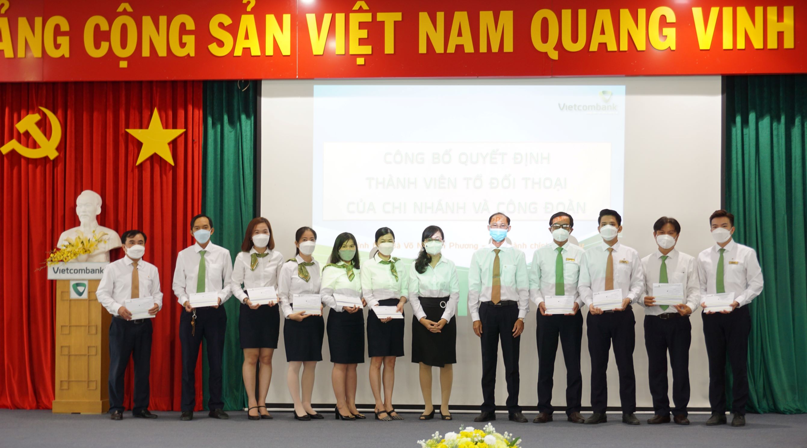 Hội nghị kết thúc trong bầu không khí vui tươi và tinh thần quyết tâm của người lao động. Tập thể cán bộ, người lao động Vietcombank An Giang luôn nhận thức đúng đắn vai trò của tập thể, phát huy ý thức trách nhiệm của mỗi cá nhân, cùng đồng tâm hiệp lực để hoàn thành xuất sắc nhiệm vụ kinh doanh năm 2022.