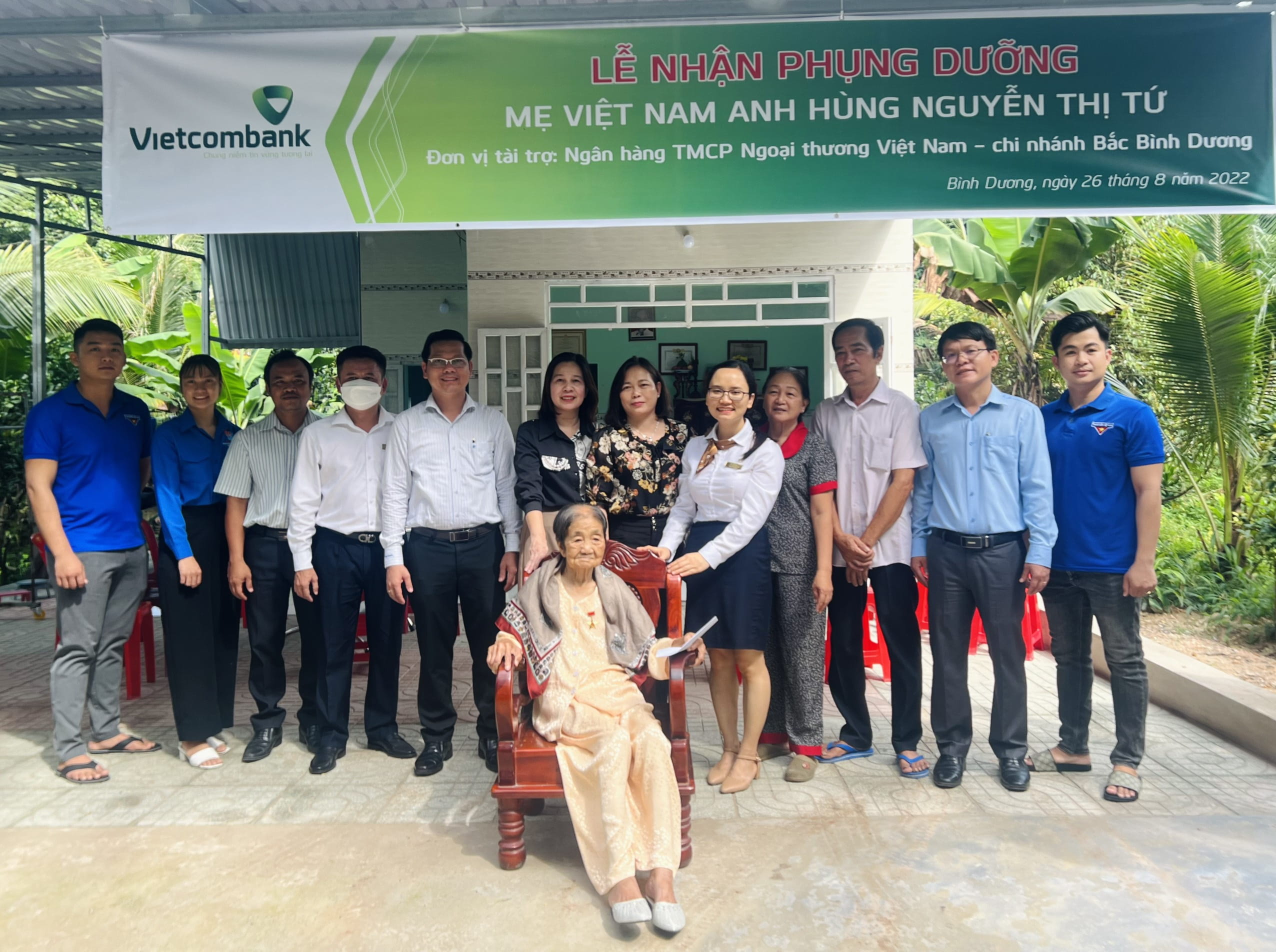 Tại buổi lễ, đại diện Vietcombank Bắc Bình Dương đã ký với chính quyền địa phương thỏa thuận nhận chăm sóc và phụng dưỡng suốt đời Mẹ VNAH Nguyễn Thị Tứ nhằm tri ân và ghi nhớ công lao to lớn trong sự nghiệp giải phóng dân tộc, xây dựng và bảo vệ Tổ quốc của Mẹ VNAH. Theo đó, hàng tháng Vietcombank Bắc Bình Dương sẽ cử đại diện thăm hỏi và trao tặng Mẹ VNAH Nguyễn Thị Tứ số tiền phụng dưỡng bằng tiền mặt 3 triệu đồng để giúp đỡ một phần chi phí sinh hoạt cuộc sống của Mẹ. Đây là dịp để thế hệ trẻ Vietcombank Bắc Bình Dương nói riêng và thế hệ trẻ Vietcombank nói chung nhắc nhở bản thân mình về đạo lý “uống nước nhớ nguồn”, một truyền thống quý báu của dân tộc từ xưa đến nay.