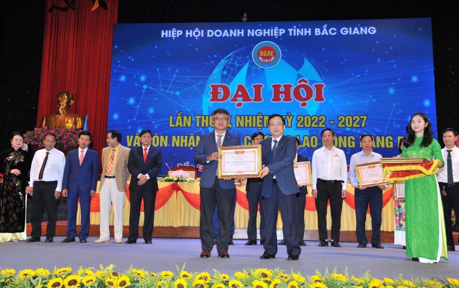 Nhân dịp này, Liên đoàn Thương mại và Công nghiệp Việt Nam (VCCI) đã trao Bằng khen cho các tập thể, cá nhân có thành tích xuất sắc trong hoạt động xây dựng và phát triển Hiệp hội doanh nghiệp tỉnh Bắc Giang, nhiệm kỳ 2017 - 2022. Với những thành tích đạt được trong hoạt động kinh doanh và những đóng góp cho sự phát triển của Hiệp hội, Vietcombank Bắc Giang vinh dự là đơn vị được nhận Bằng khen đã có thành tích xuất sắc trong hoạt động xây dựng và phát triển Hiệp hội doanh nghiệp tỉnh Bắc Giang, nhiệm kỳ 2017 - 2022.