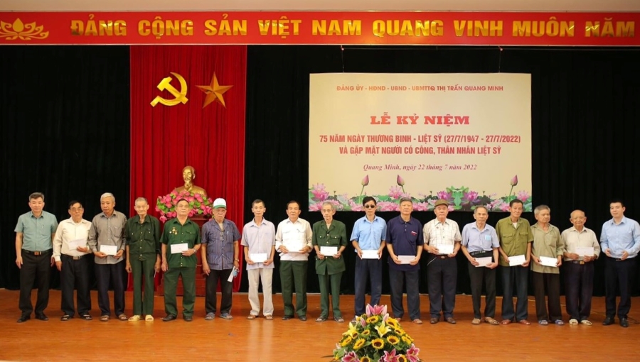 Ngày 22/07/2022, đồng chí Nguyễn Hoàng Long - Phó Trưởng phòng PGD Bắc Thăng Long đã đại diện Chi nhánh tham dự “Lễ kỷ niệm 75 năm ngày thương binh liệt sĩ và gặp mặt người có công, thân nhân liệt sĩ trên địa bàn thị trấn Quang Minh, huyện Mê Linh. Tại đây, Vietcombank Bắc Hà Nội đã trao 20 suất quà, tổng trị giá 10 triệu đồng đến các gia đình chính sách, người có công với cách mạng trên địa bàn.