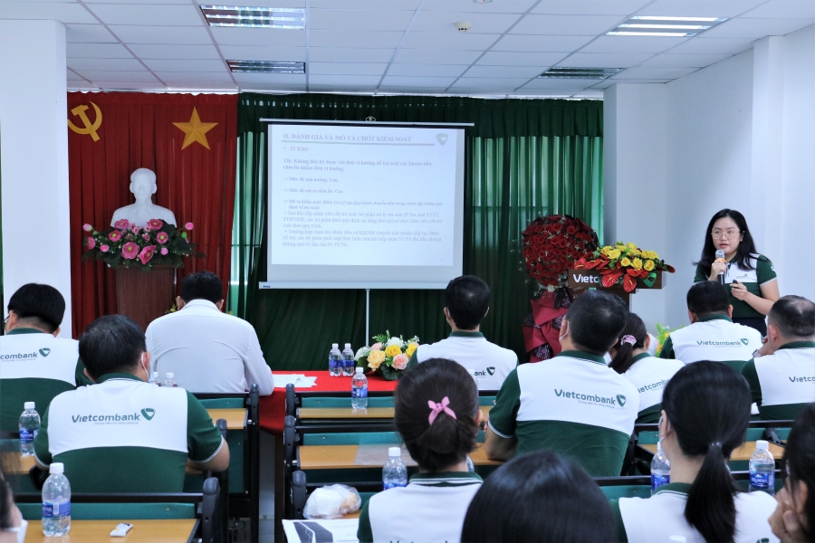 Với mục đích nâng cao nhận thức của CBNV đối với các chốt kiểm soát trong quá trình tác nghiệp, buổi Hội thảo đã diễn ra sôi nổi với các tình huống giả định và thực tế về những rủi ro trong công việc hàng ngày của CBNV. Các nhóm tham gia Hội thảo đã tích cực trao đổi, thảo luận tìm ra những giải pháp và chốt kiểm soát tối ưu nhất. Sau quá trình phân tích, trình bày, phản biện kết quả đánh giá giữa các nhóm, hội thảo đã thống nhất được danh mục rủi ro, hiệu quả chốt kiểm soát, mức độ rủi ro còn lại và đề xuất thêm một số biện pháp kiểm soát rủi ro mang tính thực tiễn và khả thi.Thông qua Hội thảo này, các CBNV tham dự đều đã hiểu rõ hơn về các quy trình, quy định của Vietcombank, những rủi ro có thể gặp phải, từ đó nâng cao nhận thức, cảnh giác để đảm bảo thông suốt và an toàn trong công việc.
