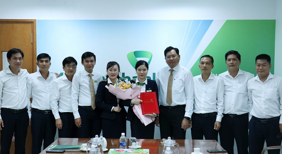 Tập thể lãnh đạo và cán bộ chủ chốt Vietcombank Bến Tre chúc mừng tân Phó trưởng phòng Giao dịch Ba Tri