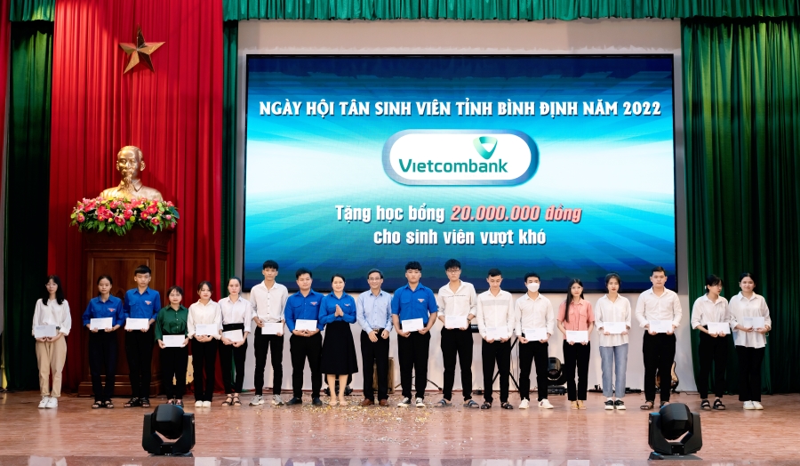 Tại đêm Gala chương trình Chào đón Tân Sinh Viên, Vietcombank Bình Định đã trao tặng 20 suất học bổng cho các em sinh viên có hoàn cảnh khó khăn. Đây là nguồn khích lệ, động viên giúp các em cố gắng phấn đấu hoàn thành xuất sắc nhiệm vụ học tập và rèn luyện.
