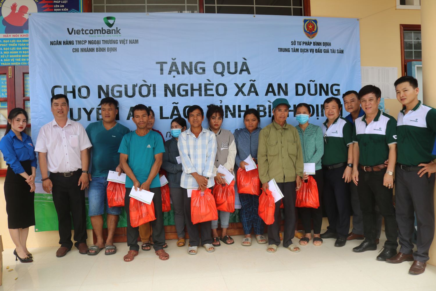 Hưởng ứng phong trào thi đua “Cả nước chung tay vì người nghèo - Không để ai bị bỏ lại phía sau” do Thủ tướng Chính phủ phát động và Tháng cao điểm “Vì người nghèo” năm 2022, sáng ngày 02/12/2022, Vietcombank Bình Định đã phối hợp cùng Trung tâm dịch vụ đấu giá tài sản trực thuộc Sở Tư pháp tỉnh Bình Định trao tặng 122 suất quà cho đồng bào nghèo miền núi tại thôn 3 xã An Dũng, huyện An Lão tỉnh Bình Định, trị giá mỗi suất quà là 700 nghìn đồng.