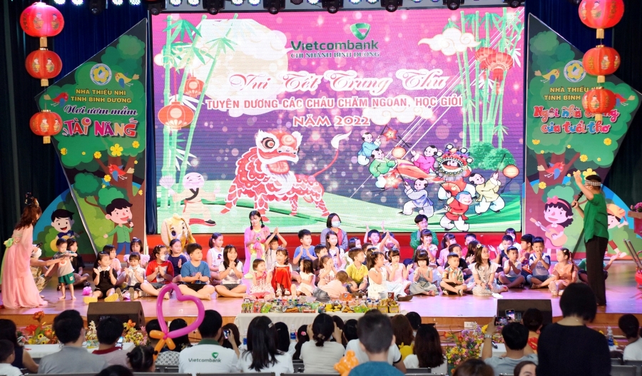 Trong không khí vui tươi, hồn nhiên của tuổi nhi đồng và sự ấm cúng của ngày tết đoàn viên, chương trình trung thu của Vietcombank Bình Dương đã thực sự là một ngày hội rộn ràng, nhiều màu sắc với sự xuất hiện của các nhân vật cổ tích là chị Hằng, chú Cuội. Các cháu thiếu nhi đã được tham gia vào các hoạt động vui chơi tập thể bổ ích đan xen với những tiết mục nghệ thuật đặc sắc như hát múa, kịch rối sự tích chú Cuội lên cung trăng, ảo thuật Tôn Ngộ Không, múa lân sư rồng, rước đèn phá cỗ. Bên cạnh đó, Chi nhánh cũng đã trao nhiều phần quà động viên các cháu đạt thành tích tốt trong học tập, rèn luyện năm học 2021 - 2022 và cuộc thi vẽ tranh “Con cũng yêu Vietcombank lần 8” năm 2022.