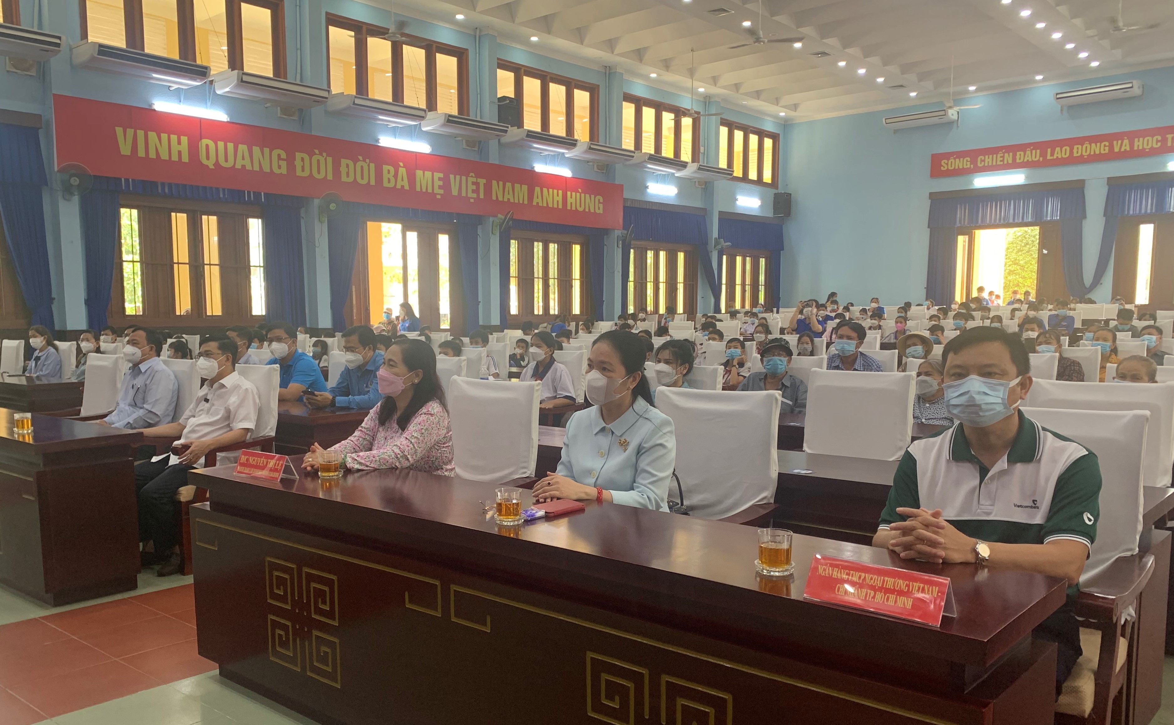 Ông Bùi Văn Khanh – Phó Giám đốc Vietcombank Tp HCM, Chủ tịch Công đoàn (bìa phải) cùng các lãnh đạo Thành ủy, HĐND, Đảng ủy khối Dân-Chính-Đảng tham dự Chương trình trao tặng quà Tết Nhâm Dần 2022