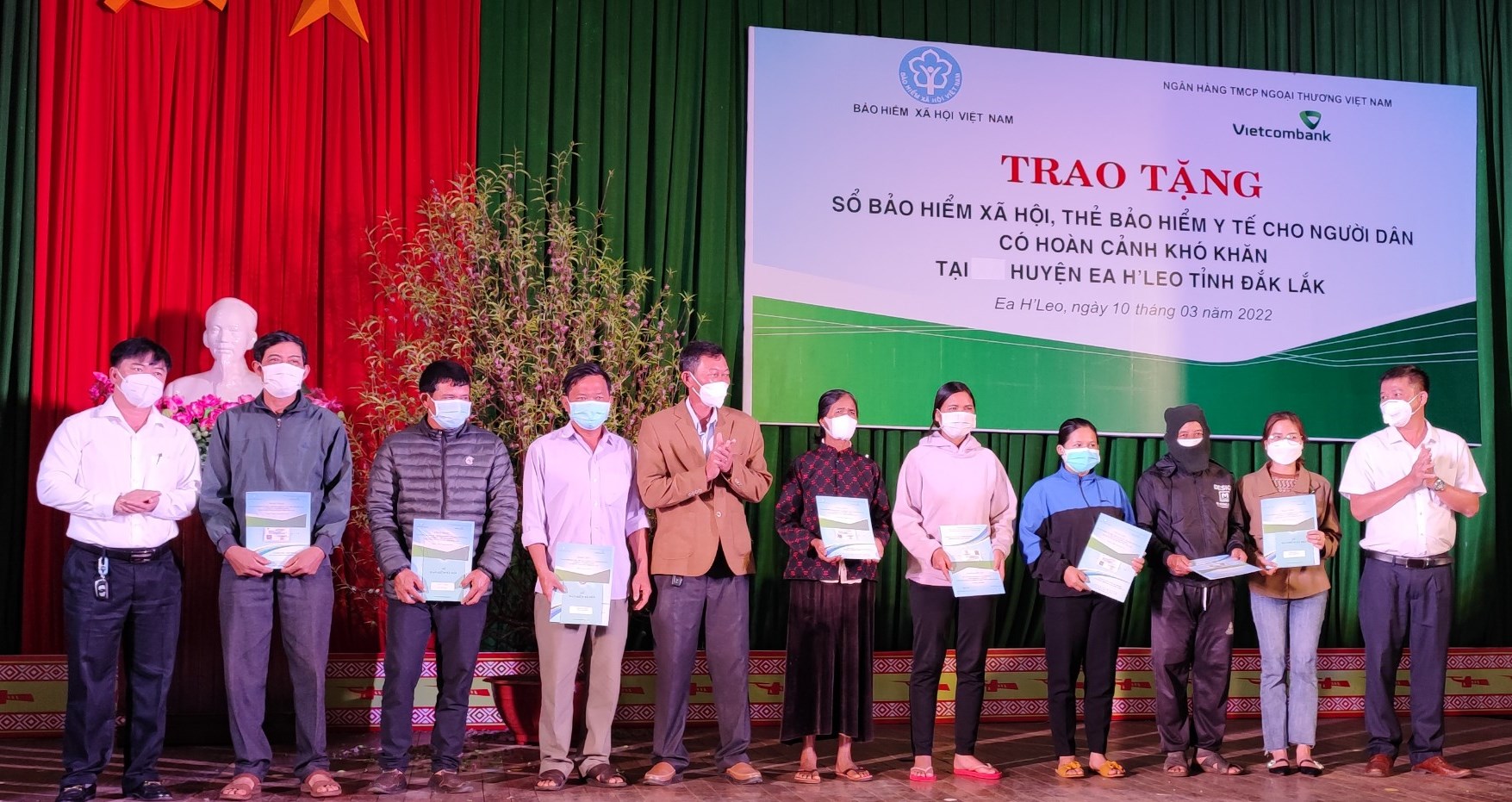 Tại tỉnh Đắk Lắk, Vietcombank Đắk Lắk phối hợp cùng BHXH tỉnh đã tổ chức trao tặng 170 sổ BHXH và 420 thẻ BHYT trị giá hơn 900 triệu đồng cho 12 huyện trên địa bàn tỉnh Đắk Lắk như Ea H’leo, Cư Mgar, Krông Năng, Krông Pắk, Krông Ana, Cư Kuin.....