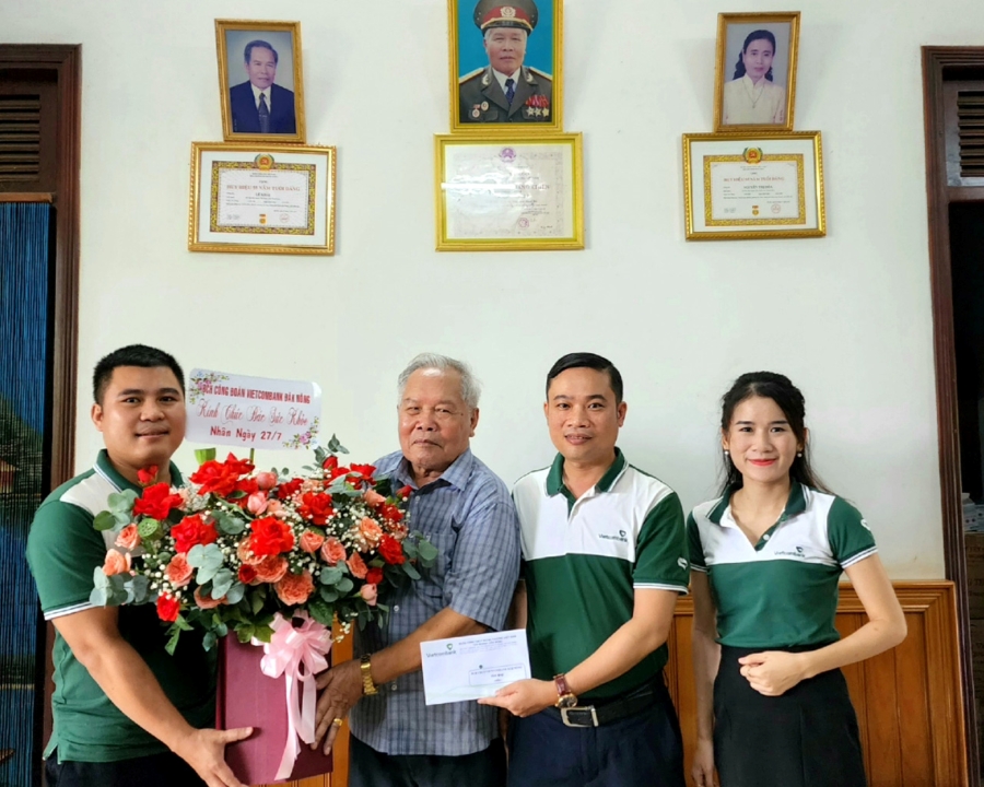 Tiếp đó, vào ngày 26/7/2022, Đại diện BCH Công đoàn cơ sở và BCH chi đoàn cơ sở Vietcombank Đắk Nông cùng đại diện ĐVCĐ chi nhánh đã đến thăm hỏi, tặng quà 2 gia đình là ông Lê Khải, sinh năm 1946 và bà Phạm Thị Đồng, sinh năm 1939. Đây là những người thân của ĐVCĐ có công lao trong cuộc kháng chiến chống Mỹ, cứu nước và 5 người thân của ĐVCĐ là thương binh.