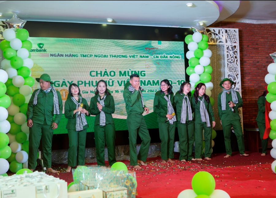Thông qua các tiết mục, đội ngũ cán bộ nhân viên của Vietcombank Đăk Nông đã khẳng định họ không chỉ là những người giỏi nghiệp vụ ngân hàng mà còn tràn đầy năng lượng với các hoạt động văn nghệ tươi vui, trẻ trung.