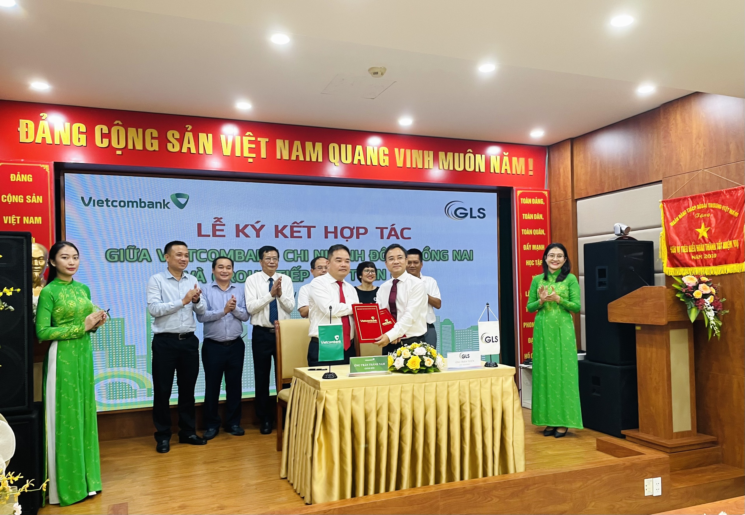 Đại diện lãnh đạo Vietcombank Đông Đồng Nai và GLS ký kết hợp tác giữa hai bên