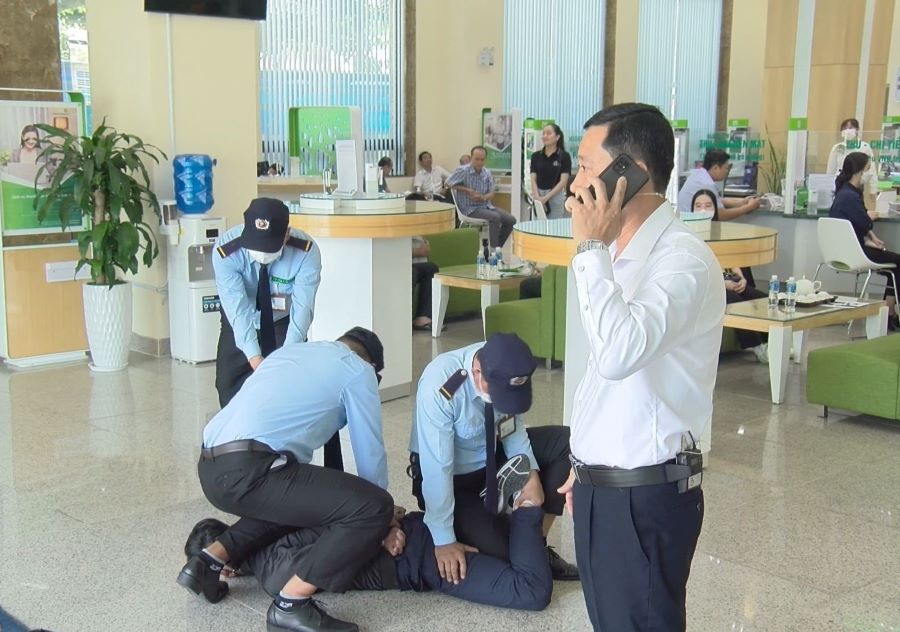 CBNV Vietcombank Đồng Tháp diễn tập tình huống bắt cướp