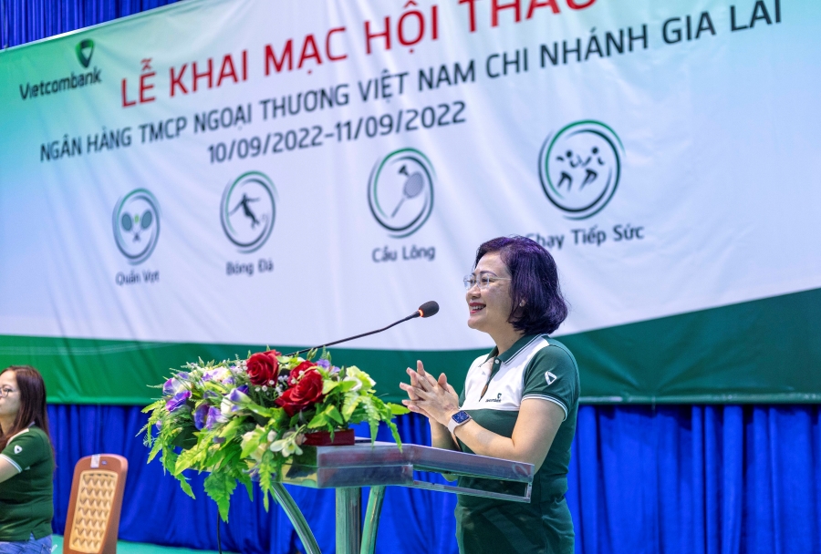 Phát biểu tại Hội thao, bà Đỗ Thị Việt Hằng - Bí thư Đảng ủy, Giám đốc Vietcombank Gia Lai cho biết: Đối với mỗi doanh nghiệp, nguồn lực con người là yếu tố quyết định đến sự tồn tại và phát triển. Để xây dựng nguồn nhân lực có chất lượng, có khả năng thích ứng với quá trình hội nhập và phát triển, bên cạnh việc tập trung đào tạo, nâng cao năng lực chuyên môn cho người lao động, Vietcombank Gia Lai luôn quan tâm, tạo điều kiện để CBNV và người lao động rèn luyện thể dục thể thao, nâng cao sức khỏe, góp phần xây dựng Vietcombank Gia Lai phát triển bền vững. Hội thao nội bộ Vietcombank Gia Lai năm 2022 là một trong chuỗi sự kiện lớn, hướng tới kỷ niệm 21 năm ngày thành lập Vietcombank Gia Lai. Hi vọng các hoạt động tương tự sẽ tạo đà, khích lệ cho toàn thể CBNV, người lao động quyết tâm phấn đấu hoàn thành xuất sắc nhiệm vụ chính trị và kế hoạch kinh doanh năm 2022 và các năm tiếp theo.