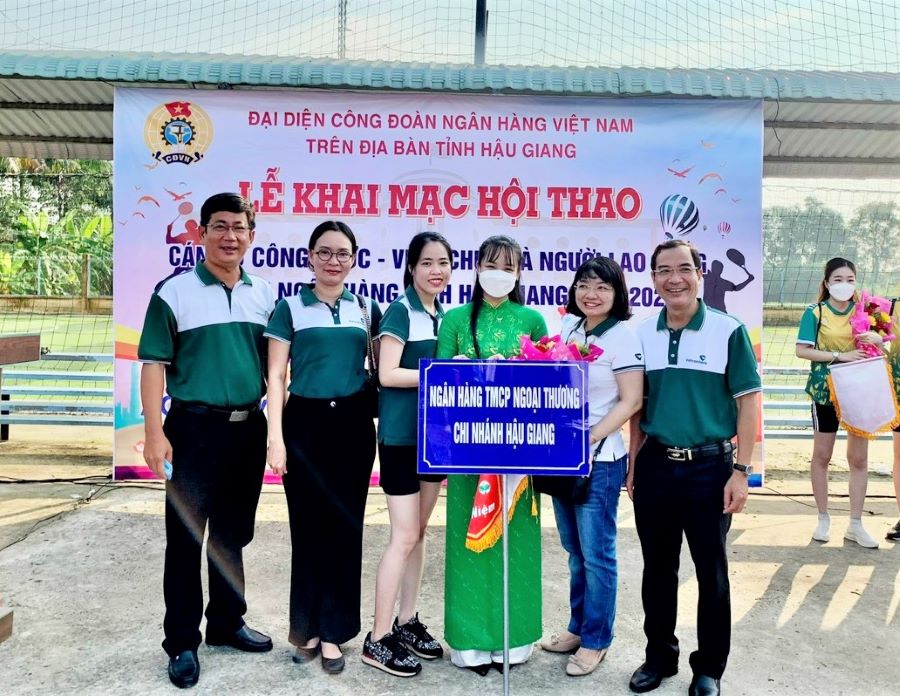 Đến với hội thao lần này, trên tinh thần giao lưu học hỏi, Vietcombank Hậu Giang đã tham gia thi đấu các môn: bóng chuyền hơi nữ, cầu long, bóng đá mini nam liên quân với Công đoàn Ngân hàng Nhà nước chi nhánh tỉnh Hậu Giang. Kết thúc hội thao, đội bóng chuyền hơi nữ Vietcombank Hậu Giang đã giành được giải khuyến khích, đồng thời nhận được cờ lưu niệm và phần thưởng khích lệ tinh thần từ Ban tổ chức.