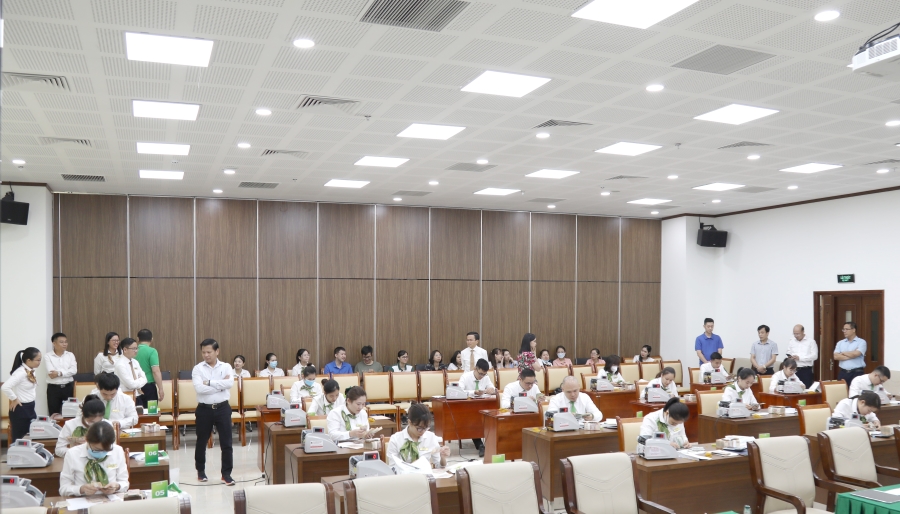 Trải qua 2 vòng thi: vòng thi lý thuyết và vòng thi thực hành, các thí sinh với tinh thần bình tĩnh, tự tin, nghiêm túc, đã thể hiện hết tài năng tay nghề, sự nhanh nhẹn, chính xác; vận dụng các kiến thức, kỹ năng đã được đào tạo để thực hiện tốt nhất bài thi với các nội dung như: đặc điểm của các loại tiền mặt đang giao dịch; hiểu biết chung về lịch sử ra đời của tiền Việt Nam; các văn bản của NHNN đã ban hành về ngân quỹ; trực tiếp thực hành kiểm đếm, chọn lọc, phân loại tiền đủ tiêu chuẩn lưu thông, lập bảng kê kiểm đếm chi tiết…