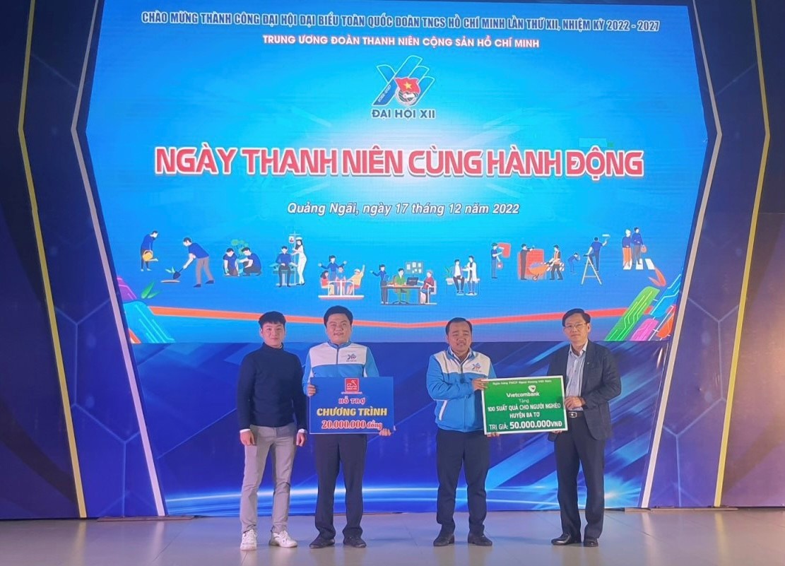 Tại buổi lễ phát động, Vietcombank Quảng Ngãi đã trao 100 suất quà tổng giá trị 50 triệu đồng cho các hộ dân có hoàn cảnh khó khăn trên địa bàn huyện Ba Tơ.