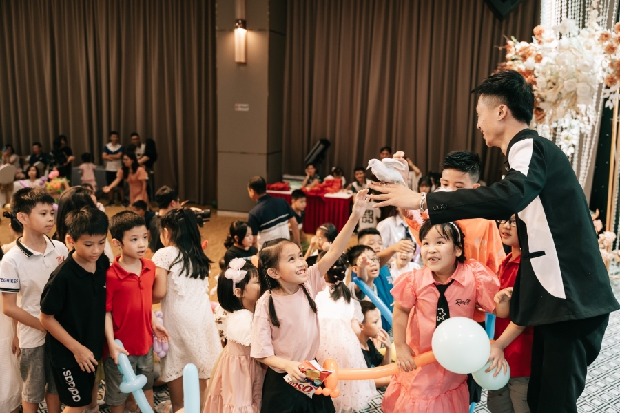 Tiết mục ảo thuật thu hút đông đảo các cháu thiếu nhi Vietcombank Quảng Ninh