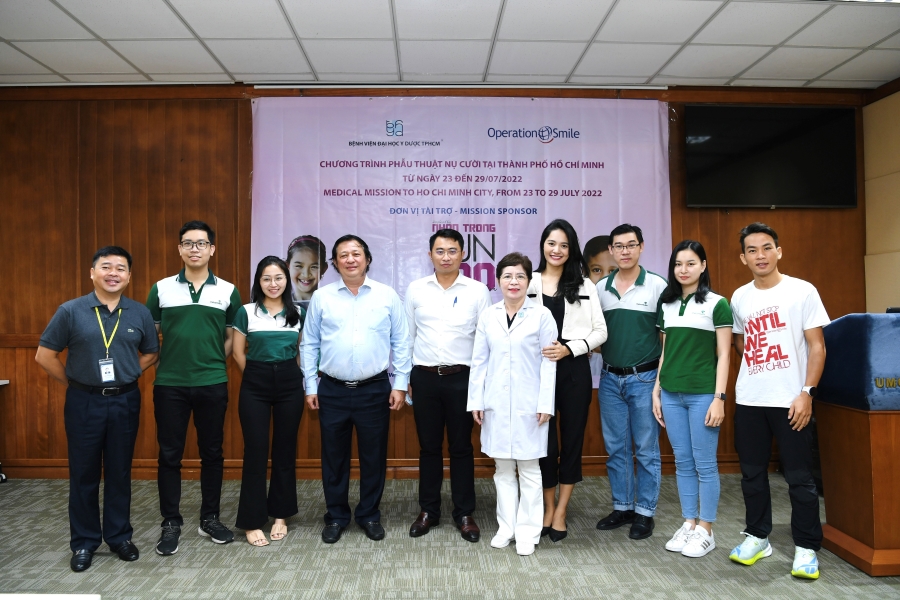 Đại diện Đoàn thanh niên Vietcombank Sài Thành cùng Ban tổ chức chương trình phẫu thuật nụ cười tại TP. Hồ Chí Minh