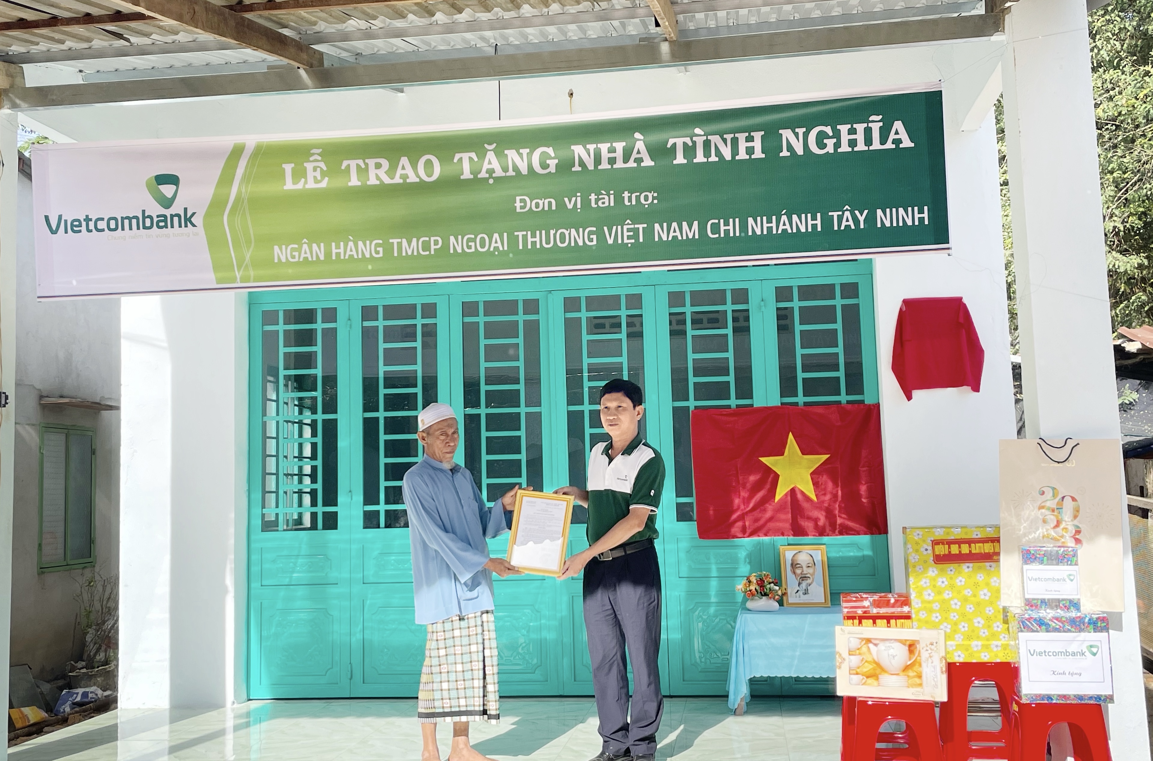 Tại buổi lễ, ông Nguyễn Hoài Phương - Giám đốc chi nhánh và ông Văn Khanh - Phó Giám đốc chi nhánh đại diện tập thể CBNV Vietcombank Tây Ninh trao 4 căn nhà tình nghĩa cho các gia đình: ông Hoàng Văn Thắng, sinh năm 1943, ở xã Thạnh Tây, huyện Tân Biên; ông Nguyễn Phi Long, sinh năm 1966, ở xã Trà Vong, huyện Tân Biên; bà Trần Thị Rựng, sinh năm 1949, ở phường Lộc Hưng, huyện Trảng Bàng và ông ABDOL ROMAN, sinh năm 1959 là hộ dân tộc Chăm ở xã Tân Hội, huyện Tân Châu. Đây đều là những người tham gia chiến tranh, bảo vệ Tổ quốc trong thời kỳ chiến tranh, có khó khăn về sức khỏe, thu nhập và nhà ở. Mỗi căn nhà được xây dựng kiên cố với trị giá hơn 100 triệu đồng, trong đó Vietcombank Tây Ninh tài trợ 80 triệu đồng, số còn lại do các hộ gia đình tự đóng góp.