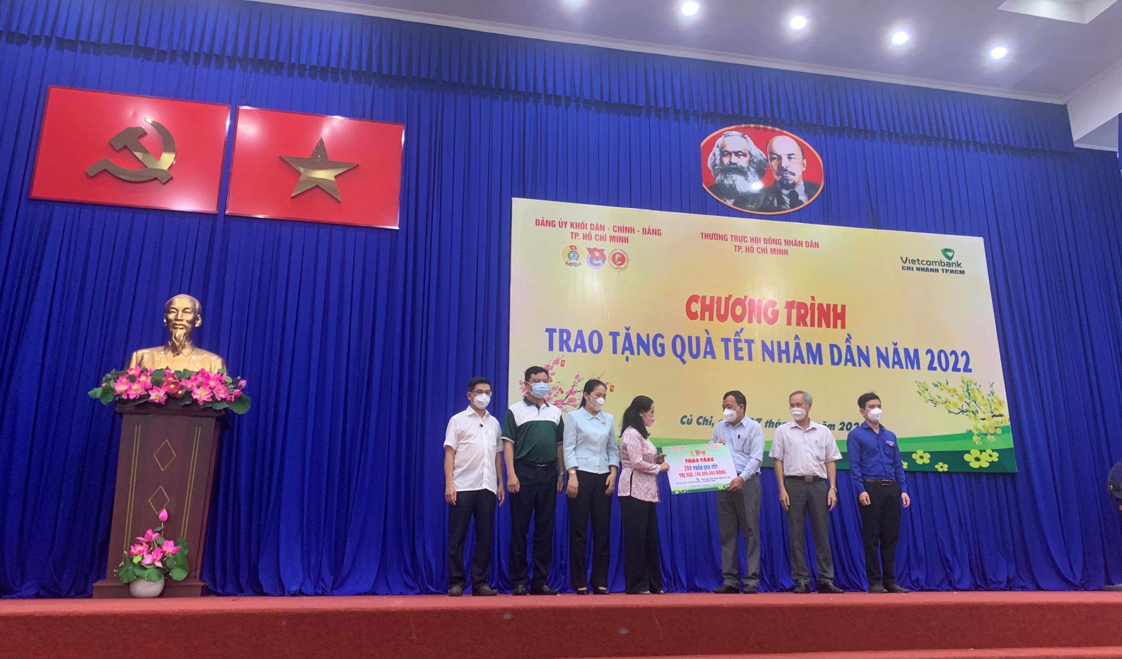 Phát biểu tại sự kiện, ông Bùi Văn Khanh - Phó Giám đốc Vietcombank Tp. HCM, Chủ tịch công đoàn đại diện Chi nhánh cảm ơn Đảng ủy khối Dân-Chính-Đảng Tp. HCM đã luôn tạo nhiều cơ hội kết nối giữa Vietcombank Tp. HCM và các địa phương. Từ đó Vietcombank Tp. HCM thực hiện được những hoạt động ASXH ý nghĩa, được gửi gắm tình cảm thân ái, sẻ chia của tập thể CBNV người lao động đến những hoàn cảnh khó khăn trong cuộc sống, đặc biệt trong năm 2021 với nhiều ảnh hưởng do đại dịch COVID-19 mà Củ Chi, Hóc Môn và Bình Chánh là 3 địa phương chịu ảnh hưởng lớn nhất.