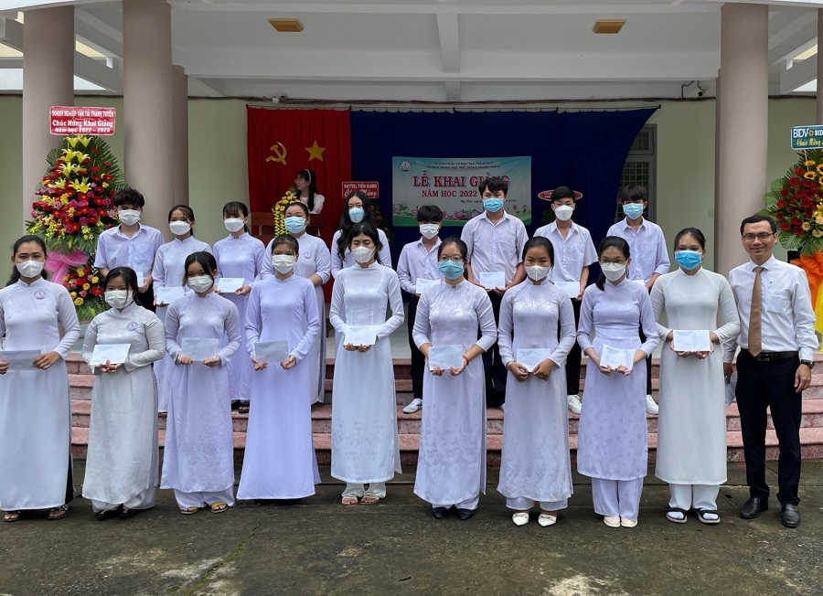 Vietcombank Tiền Giang trao hoc bổng cho học sinh có hoàn cảnh khó khăn nhân dịp khai giảng năm học mới