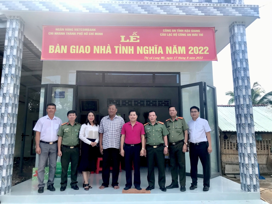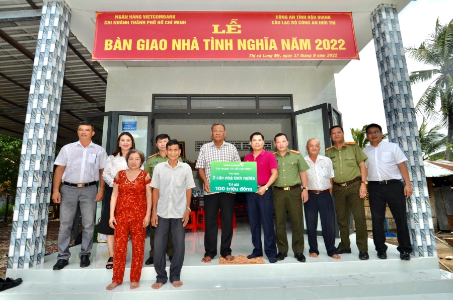 Nhân dịp kỷ niệm 77 năm ngày thành lập lực lượng Công an nhân dân, ngày 17/8/2022, Đảng ủy, Ban Giám đốc Vietcombank Tp.Hồ Chí Minh đã trao tặng 2 căn nhà tình nghĩa tại thị xã Long Mỹ, tỉnh Hậu Giang với tổng giá trị 100 triệu đồng cho 2 cán bộ hưu trí có hoàn cảnh khó khăn thuộc Câu lạc bộ hưu trí Công an tỉnh Hậu Giang.