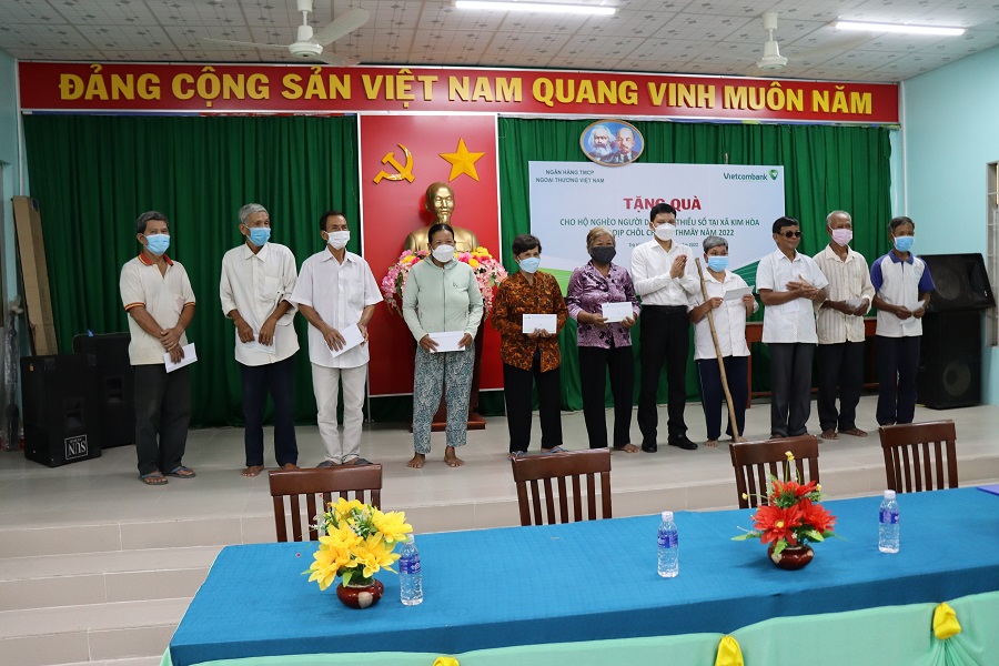 Nhân dịp Tết Chôl Chnam Thmây, sáng ngày 12/04/2022, đại diện Ban Giám đốc Vietcombank Trà Vinh đã trực tiếp đến trao tặng quà cho các hộ gia đình người dân tộc Khmer tại xã Kim Hòa, huyện Cầu Ngang, tỉnh Trà Vinh.