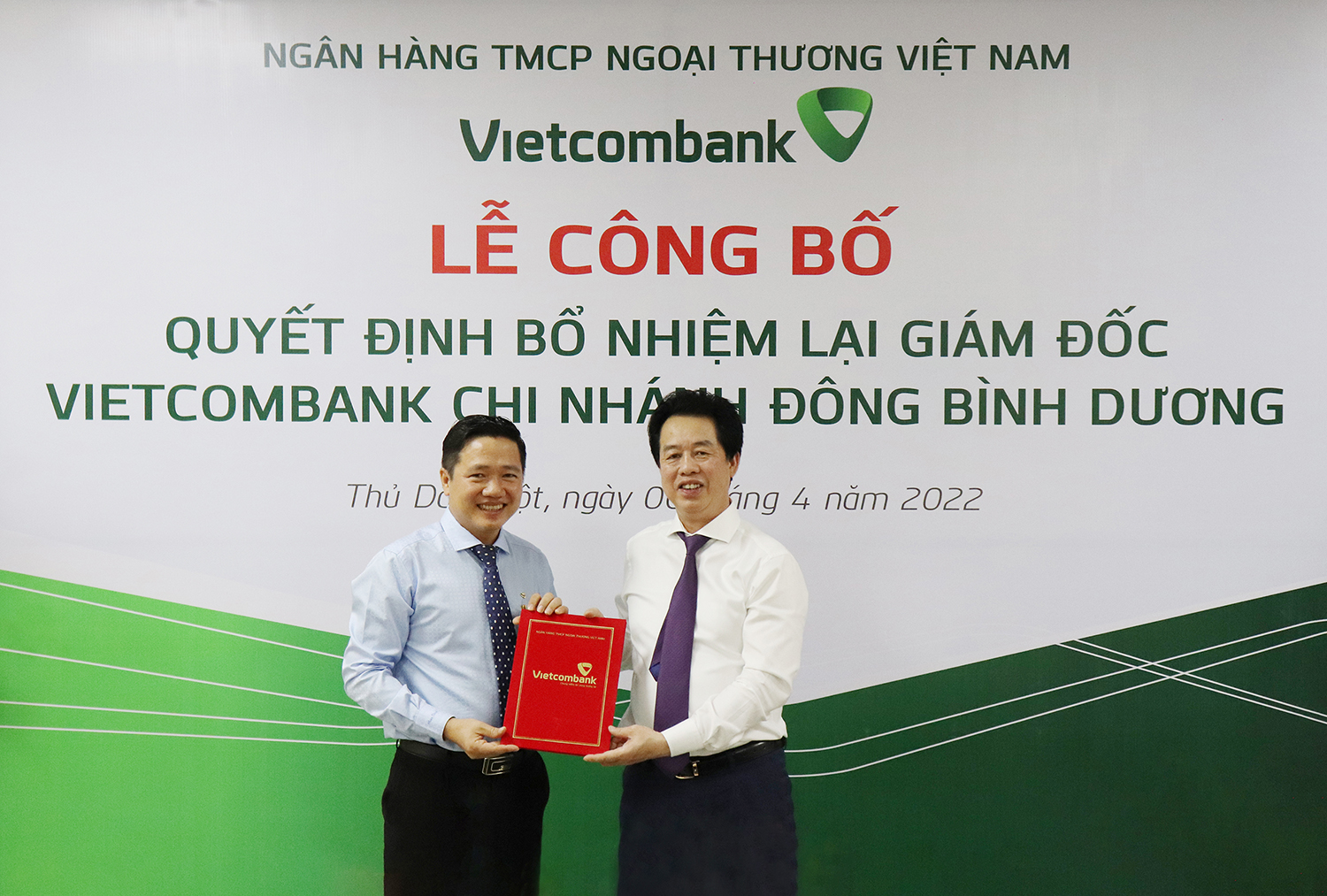 Tại buổi lễ, Vietcombank đã công bố quyết định của Hội đồng quản trị về việc bổ nhiệm lại ông Nguyễn Khánh Thắng giữ chức vụ Giám đốc Vietcombank Đông Bình Dương kể từ ngày 10/04/2022.