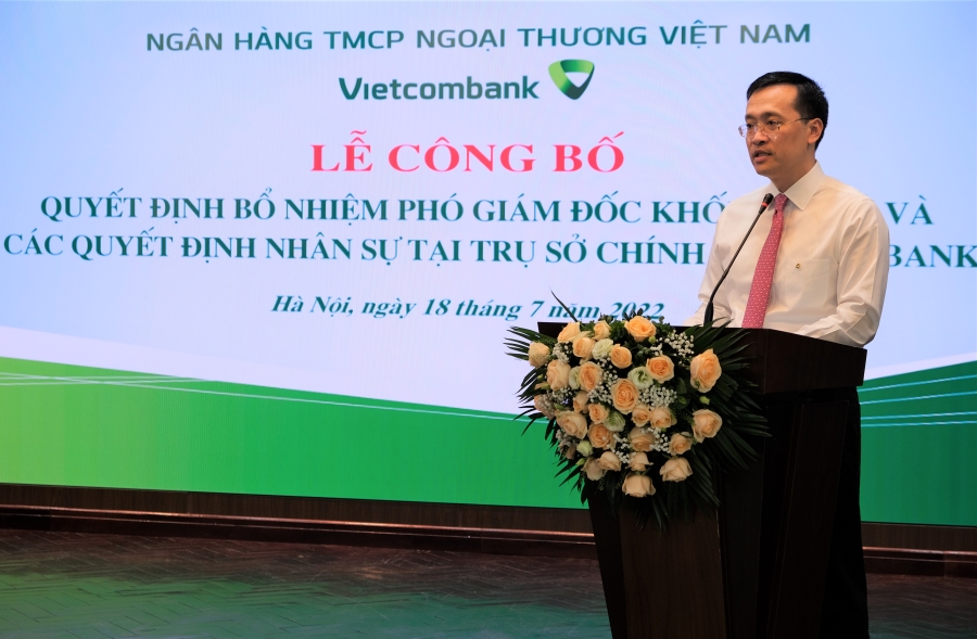 Tại buổi lễ, ông Đặng Bình Nguyên - Trưởng Ban Tổ chức & Nhân sự đã công bố các quyết định của Vietcombank về việc kiện toàn mô hình tổ chức của Khối Bán lẻ tại Trụ sở chính Vietcombank và bổ nhiệm cán bộ. Theo đó, ngày 21 tháng 06 năm 2022, HĐQT Vietcombank đã ban hành Quyết định số 1755/QĐ-VCB-CS&KHNS về việc kiện toàn mô hình tổ chức của Khối Bán lẻ tại Trụ sở chính Vietcombank. Tại Quyết định số 1999/QĐ-VCB-TCNS ngày 15 tháng 07 năm 2022, Chủ tịch HĐQT Vietcombank bổ nhiệm bà Đoàn Hồng Nhung - Trưởng phòng Chính sách khách hàng và sản phẩm bán lẻ giữ chức vụ Phó Giám đốc Khối Bán lẻ Trụ sở chính Vietcombank đồng thời kiêm nhiệm chức vụ Trưởng phòng Phát triển sản phẩm bán lẻ cho đến khi có nhân sự thay thế kể từ ngày 18/07/2022. Tại Quyết định số 1956/QĐ-VCB-TCNS ngày 15 tháng 07 năm 2022, Chủ tịch HĐQT Vietcombank đã điều động, bổ nhiệm bà Lê Thị Thúy Nga - Phó Trưởng phòng Chính sách khách hàng và sản phẩm bán lẻ giữ chức vụ Phó Trưởng phòng Chính sách khách hàng bán lẻ Trụ sở chính Vietcombank và giao nhiệm vụ phụ trách Phòng Chính sách khách hàng bán lẻ cho đến khi có nhân sự Trưởng phòng kể từ ngày 18/07/2022.