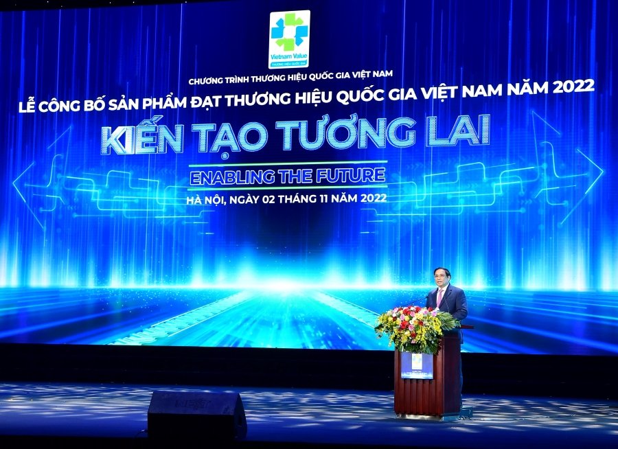 Phát biểu ý kiến chỉ đạo, thay mặt lãnh đạo Đảng, Nhà nước, Thủ tướng Phạm Minh Chính nhiệt liệt chúc mừng 172 doanh nghiệp có sản phẩm đạt Thương hiệu quốc gia năm 2022, đồng thời ghi nhận, đánh giá cao nỗ lực và những đóng góp quan trọng của cộng đồng doanh nghiệp, doanh nhân Việt Nam. Việc xây dựng Thương hiệu quốc gia là một nhiệm vụ có ý nghĩa đặc biệt quan trọng, vừa có tính cấp bách, vừa mang tính chiến lược, có phạm vi rộng, nhiều việc phải làm với tác động, ảnh hưởng lớn, đòi hỏi sự vào cuộc và nỗ lực của cả hệ thống chính trị, các cấp, các ngành, các địa phương, đặc biệt cộng đồng doanh nghiệp, doanh nhân.