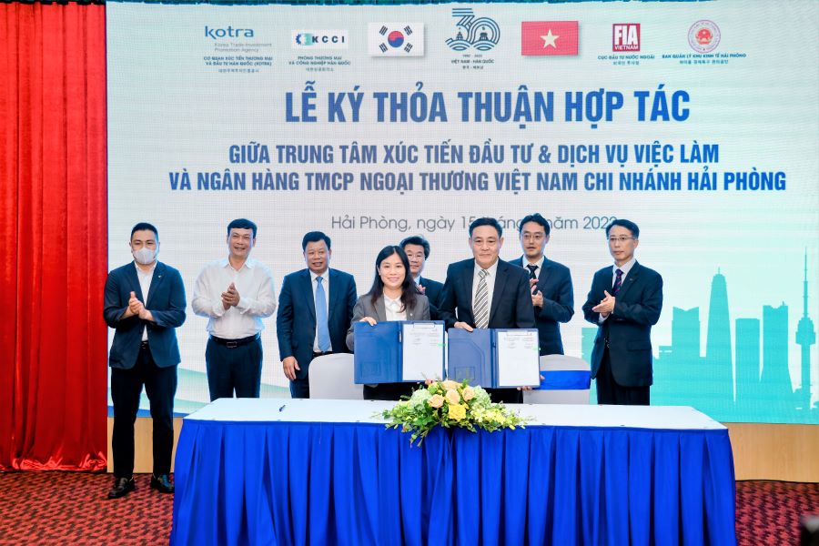 Trong khuôn khổ chương trình, nhằm khẳng định vị thế và uy tín của Vietcombank trong giao dịch với các doanh nghiệp FDI, đồng thời thể hiện thiện chí của Vietcombank luôn đồng hành cùng các doanh nghiệp nước ngoài đầu tư vào Việt Nam, đại diện Vietcombank Hải Phòng đã thực hiện ký kết thỏa thuận hợp tác với Trung tâm Xúc tiến đầu tư và dịch vụ việc làm Khu kinh tế Hải Phòng. Theo đó, Vietcombank sẵn sàng cung cấp các giải pháp tài chính - ngân hàng toàn diện, chuyên biệt dành riêng cho các Khách hàng FDI, đặc biệt các doanh nghiệp Hàn Quốc đầu tư vào Việt Nam, đồng hành cùng quá trình phát triển của các doanh nghiệp.
