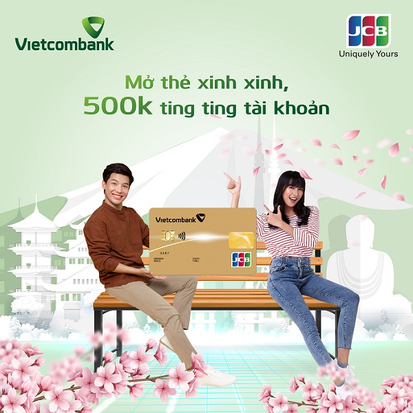 Hiện tại, để tri ân và khuyến khích Khách hàng chi tiêu thẻ Vietcombank JCB, ngoài những chương trình ưu đãi vô cùng hấp dẫn từ Tổ chức thẻ quốc tế JCB, từ ngày 15/06/2022 đến hết ngày 15/09/2022, Vietcombank triển khai chương trình khuyến mại “Mở thẻ xinh xinh, 500k ting ting tài khoản” dành cho chủ thẻ tín dụng phát hành mới. Khách hàng được hoàn tiền 500.000 VND khi có chi tiêu từ 2 triệu đồng trong vòng 45 ngày kể từ ngày phát hành thẻ.