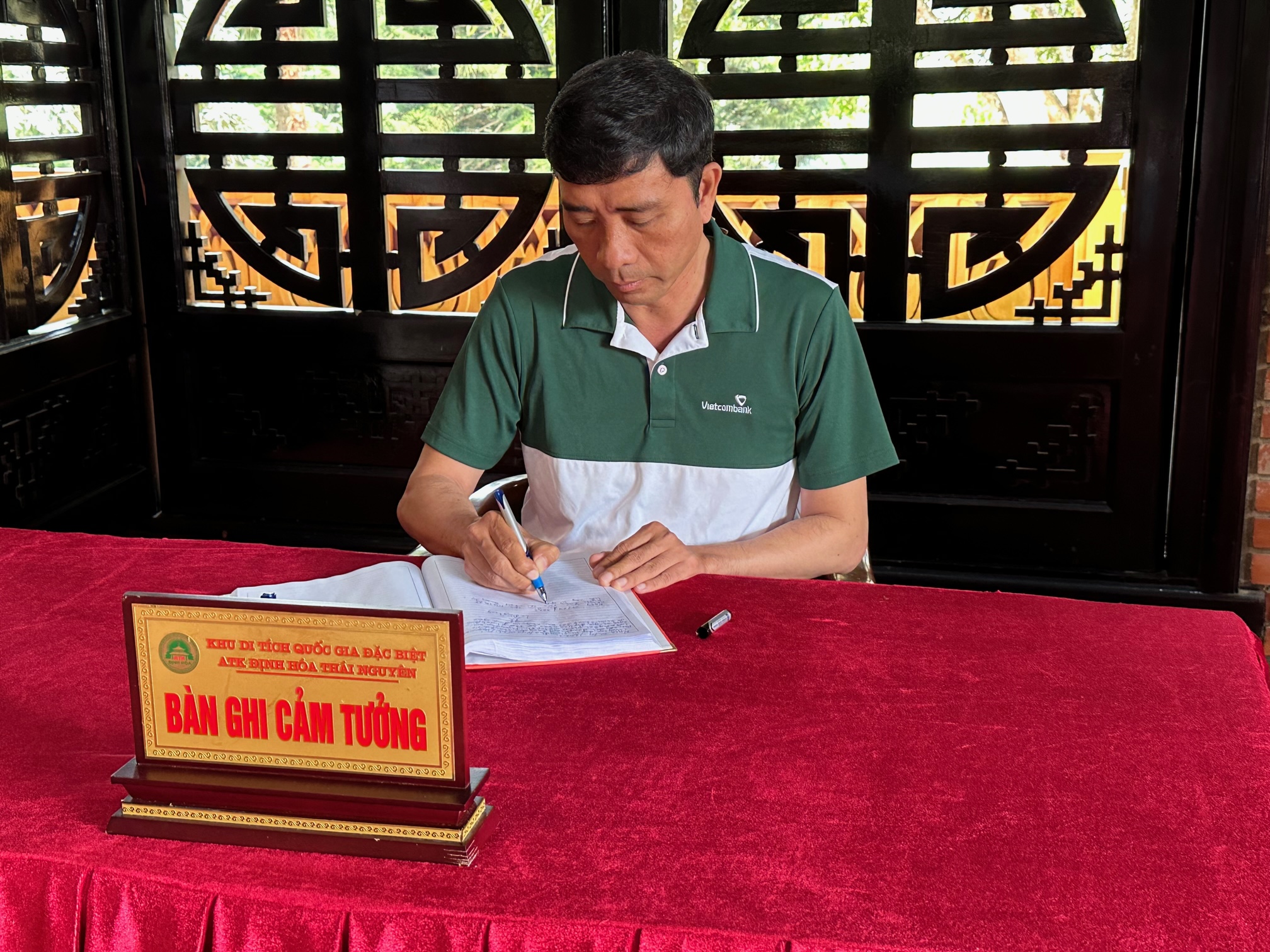 Đ/c Trần Thanh Hải - Bí thư chi bộ, Giám đốc Vietcombank Quảng Trị viết cảm tưởng tại Nhà tưởng niệm Bác Hồ