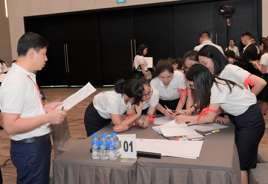 Các thí sinh tham gia phần thi làm việc nhóm dưới sự giám sát và chấm điểm của Ban Giám khảo