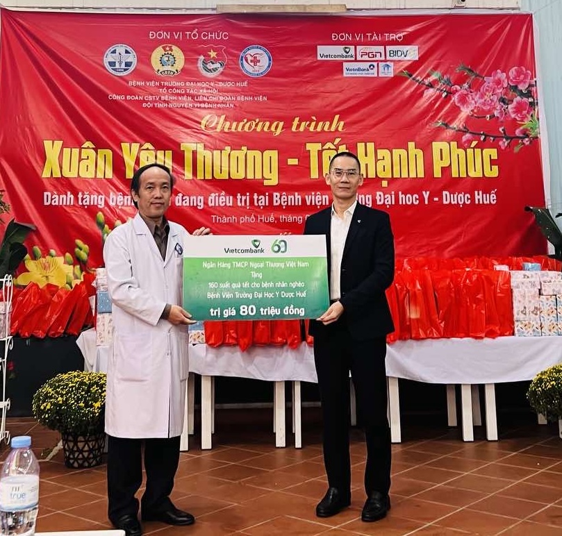 “Vietcombank chung tay vì người nghèo” là chương trình an sinh xã hội nằm trong chuỗi các hoạt động hướng tới kỉ niệm 60 năm thành lập Vietcombank, 30 năm thành lập Công đoàn Ngân hàng Việt Nam và chào mừng Đại hội Công đoàn các cấp. Trong khuôn khổ chương trình, đại diện Công đoàn cơ sở Vietcombank Huế đã trao tặng 1.020 suất quà Tết đến tận tay các gia đình chính sách, hộ nghèo, hộ gia đình có hoàn cảnh khó khăn trên địa bàn huyện Phong Điền, Nam Đông, A Lưới, một số phường thuộc TP Huế và bệnh nhân nghèo đang điều trị tại Bệnh viện Trung ương Huế, Bệnh viện Trường Đại học Y Dược Huế.