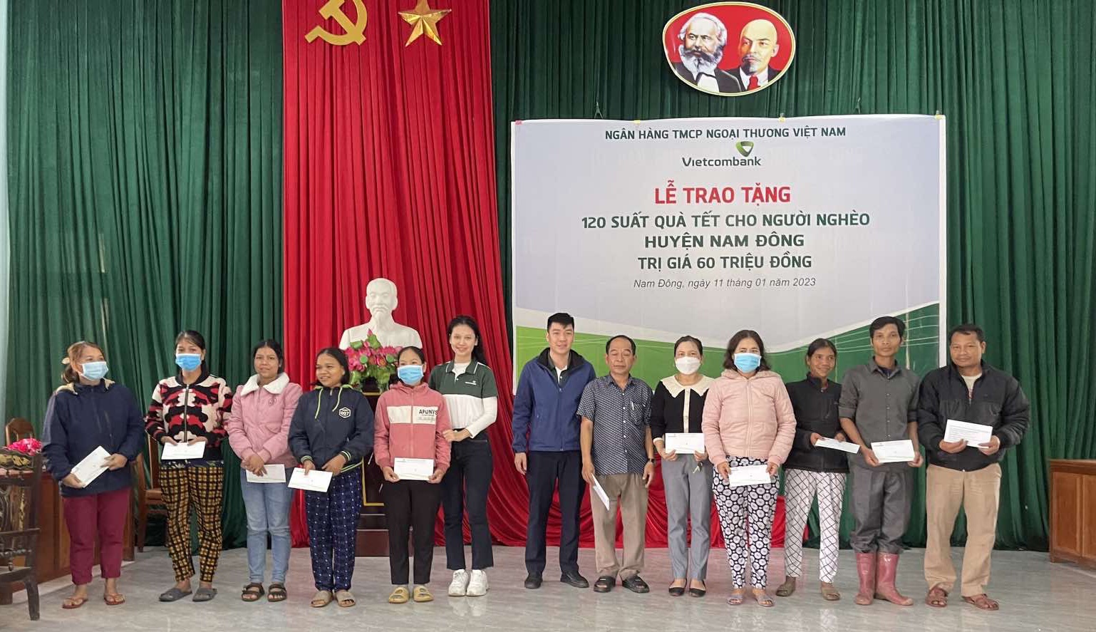 Đại diện Công đoàn cơ sở Vietcombank Huế tặng 120 suất quà Tết trị giá 60 triệu đồng cho người nghèo tại huyện Nam Đông, tỉnh Thừa Thiên Huế