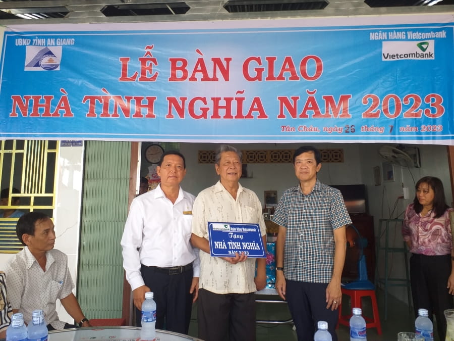 Thực hiện truyền thống “uống nước nhớ nguồn” của dân tộc, Vietcombank đã tài trợ kinh phí xây dựng 6 căn nhà tình nghĩa từ nguồn an sinh xã hội cho các gia đình thương binh, liệt sỹ, gia đình có công cách mạng tại huyện Châu Phú và huyện Thoại Sơn, tỉnh An Giang.