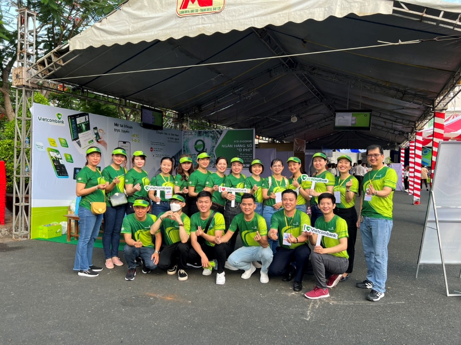 Các cán bộ Vietcombank An Giang tham gia Hội chợ việc làm năm 2023