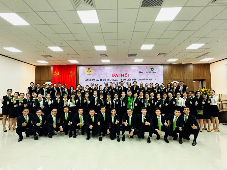 Tập thể Vietcombank Bạc Liêu tại Đại hội Công đoàn lần thứ III nhiệm kỳ 2023 - 2028 của chi nhánh