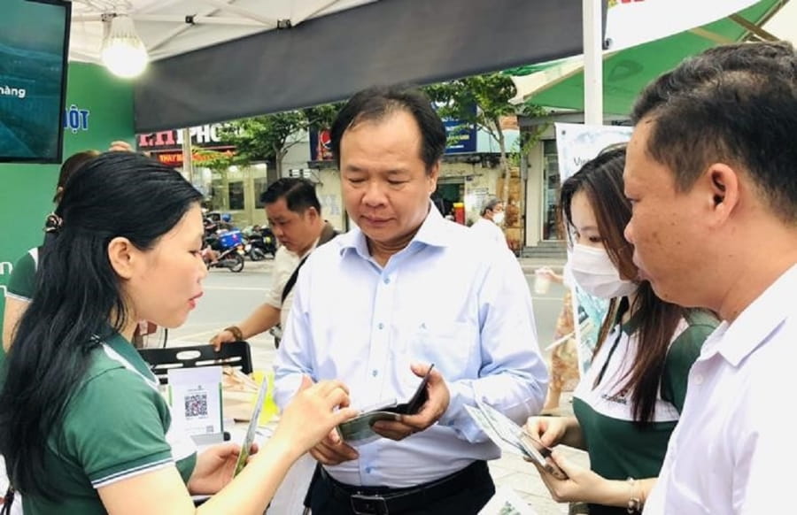Sau buổi lễ, đội ngũ cán bộ tư vấn của Vietcombank Bình Dương đã tham gia tuyên truyền, hỗ trợ người dân, cơ sở kinh doanh tiếp cận các dịch vụ ngân hàng số cùng các sản phẩm dịch vụ ngân hàng bán lẻ tiện ích của Vietcombank.