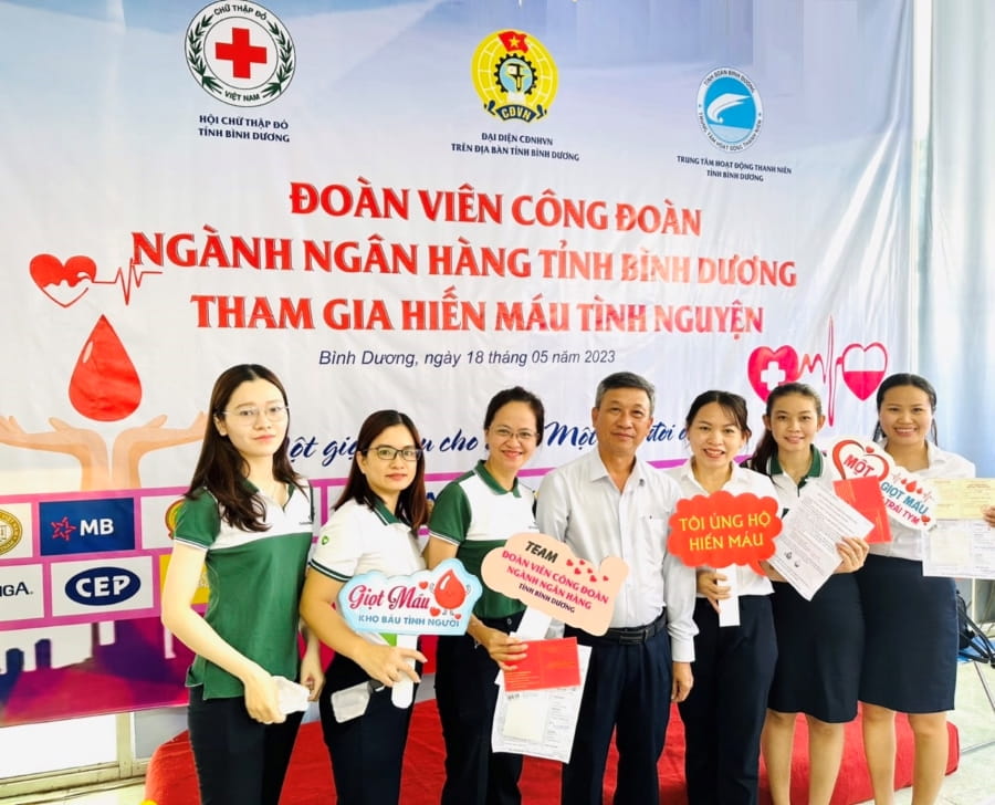 Đoàn viên công đoàn trực thuộc Vietcombank Bình Dương cùng các tổ chức tín dụng trên địa bàn tỉnh đã tích cực hưởng ứng, đăng ký tham gia đóng góp 250 đơn vị máu, góp phần lan tỏa ý nghĩa cao đẹp của hành động “Hiến máu - cứu người” trong cộng đồng xã hội. Đây là một trong các hoạt động ý nghĩa được Vietcombank Bình Dương thường xuyên tham gia, thể hiện tinh thần nhân văn, chung tay cùng cộng đồng cung cấp thêm nhiều đơn vị máu cho hoạt động y tế, góp phần lan tỏa hình ảnh Vietcombank gần gũi và ấm áp tình người.