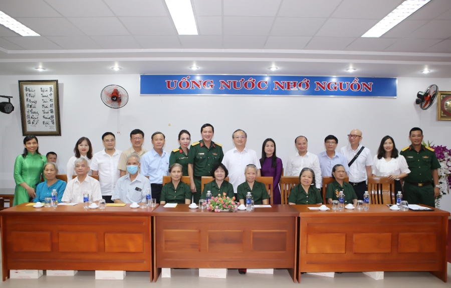Bà Nguyễn Thị Lan Hương - Phó Giám đốc Vietcombank Đà Nẵng (ngoài cùng, bên trái) đồng hành cùng đoàn công tác VOV thăm Trung tâm phụng dưỡng người có công với cách mạng thành phố Đà Nẵng