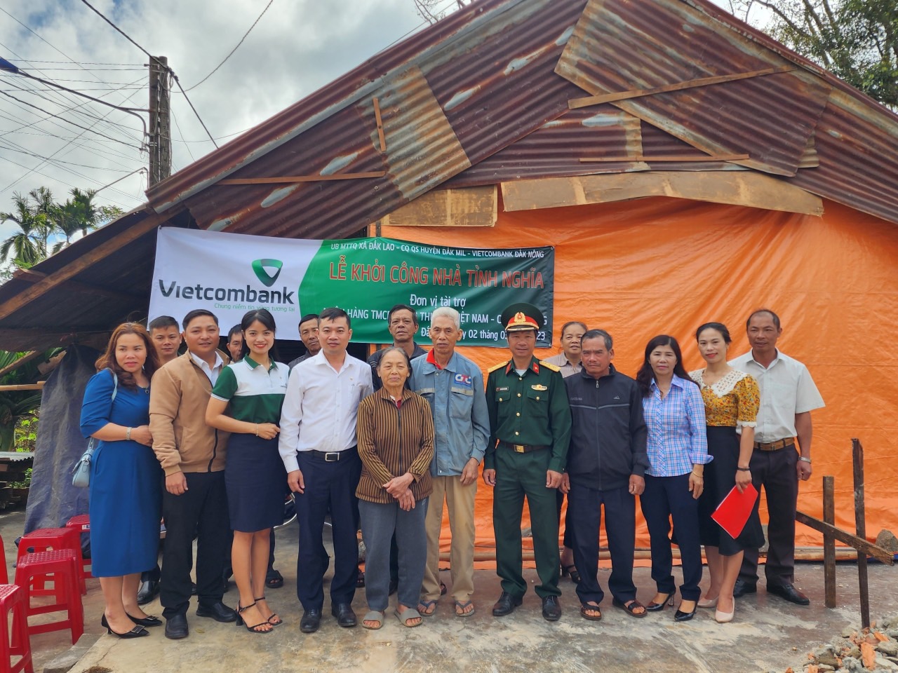 Hưởng ứng kêu gọi của UBMTTQ xã Đăk Lao, Vietcombank Đăk Nông đã hỗ trợ 70 triệu đồng xây dựng ngôi nhà tình nghĩa cho gia đình. Công trình nằm trong chương trình an sinh xã hội của CĐCS Vietcombank Đăk Nông năm 2023.